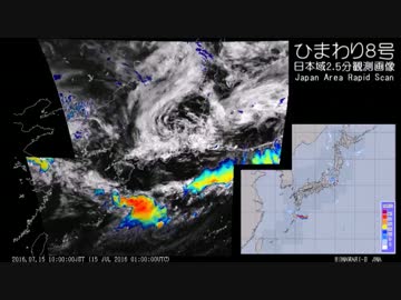 【関東 局地的大雨】2016年7月15日の気象衛星画像+α(日本域)