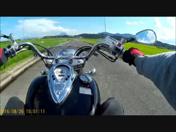田舎の果てしない田んぼの一本道をバイクで走る 鹿児島県8月26日