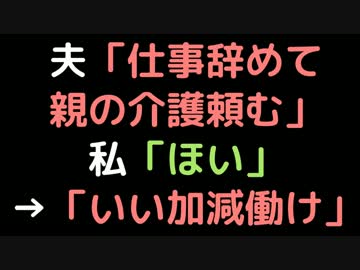 夫「仕事辞めて親の介護頼む」 私「ほい」→「いい加減働け」