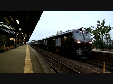 阿蘇駅2番ホームに到着する「ななつ星in九州」