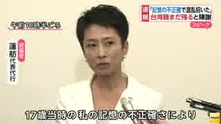 [民進・蓮舫代表代行] 台湾籍まだ残っている。混乱招いたと陳謝 9.13