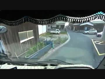 大型トラックでせまい道をゆく