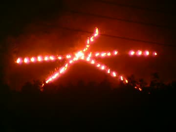 京都 五山の送り火。東山の「大」の文字。2015年。