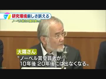 大隅氏 日本からノーベル賞受賞者出なくなる