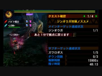 [MH4G]ジンオウガ狩猟ノススメ 大剣ペア 01’46”16