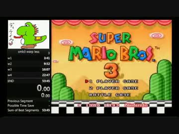【RTA】マリオ3笛なしRTA 53:37.99 TS録画版 1/3【実況】