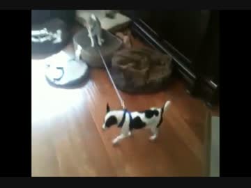 猫「行かせないニャ!」 散歩に行こうとする犬を全力で阻止する猫!w