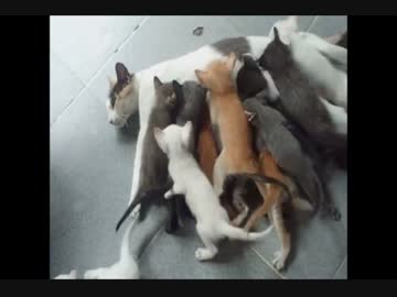 【子猫まみれ】 16匹の子猫に囲まれ、子育てが大変そうなお母さん猫!w
