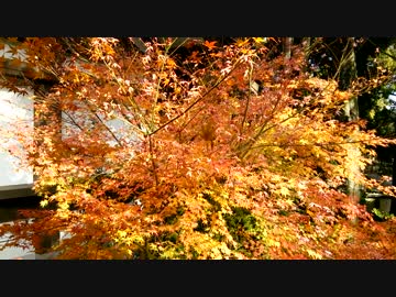 蜘蛛の巣に絡まり揺れる紅葉の葉@大覚寺20161126