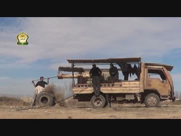 シリア内戦 DIY自走砲の弾薬装填