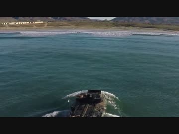 【在日米海兵隊】揚陸艦から下船した海兵隊の水陸両用車が砂浜に上陸