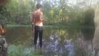 カンボジアの友達の家のそばにある池で釣り??