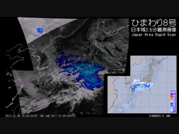 【南岸低気圧】2017年1月8日の気象衛星画像+α (日本域)