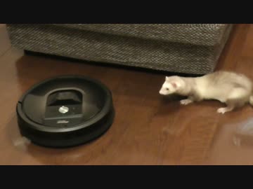 はじめてのルンバに大興奮のフェレット