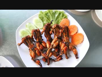 カンボジアの屋台 蛙の網焼き&ザルガイ炒め