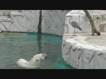 ホッキョクグマとアオサギの餌をめぐる戦い