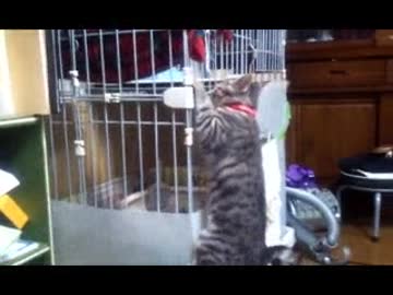 小屋から無理やり脱走する猫