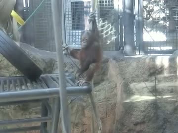 元気なオランウータンの子供(多摩動物公園)
