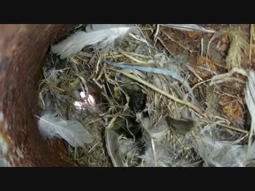 スズメの巣をのぞき見
