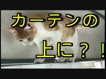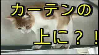 カーテンレールの上に乗っかる猫!