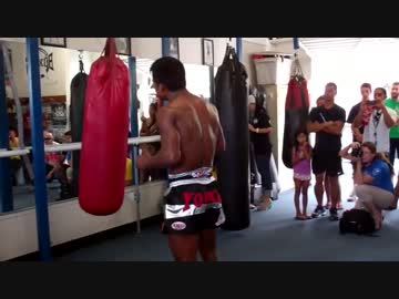 ブアカーオによるサンドバッグがちぎれそうなキック