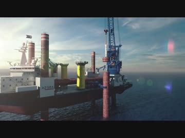 洋上風力発電機の建設風景(CG)
