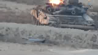 [戦車]攻撃を受けハッチから炎を吹き上げるT-90戦車[T-90]