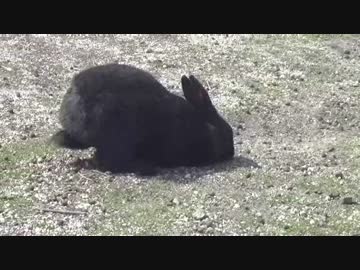 うさぎ島の黒うさぎ!!穴を掘ってます!!