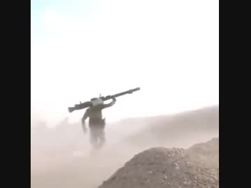ソ連製無反動砲(SPG-9)を肩に担いで撃つ超人