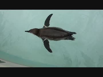 フンボルトペンギンが漂いながら毛づくろい。ゥアーーーッ