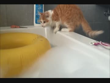 猫がうっかりお風呂の中にダイブした結果、、、大パニックに!w