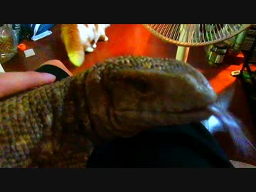 サバンナモニター膝の上でマッサージ