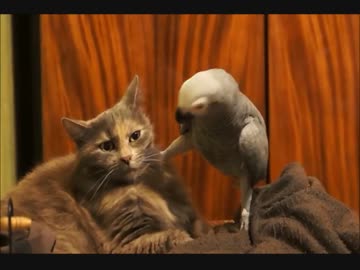 猫と遊びたくてちょっかいを出すオウムと、無視し続ける猫!w