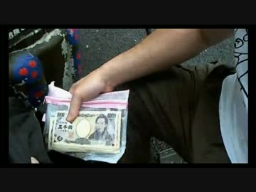 よっさん - ステッカーの売上金を見せる