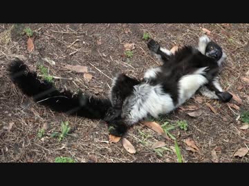 クロシロエリマキキツネザルが大の字になって、手先足先をビクッ