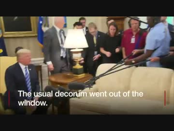 Trump大統領が執務室になだれ込み場所取りで押し合う韓国Mediaに怒る!