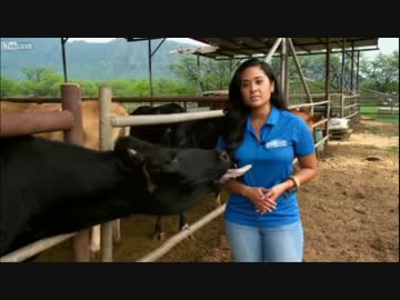 【エロ牛】取材に来た女性の胸をペロリ