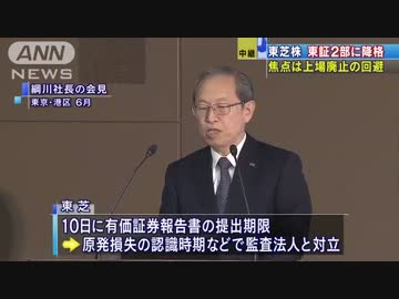 東芝 きょう東証2部に降格