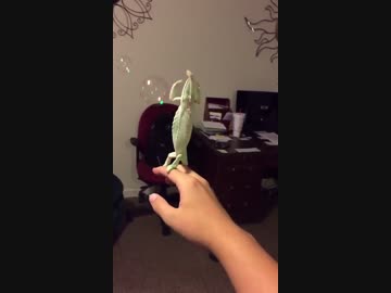 まるで童話の挿絵のよう.シャボン玉にはしゃぐカメレオンが可愛いすぎる