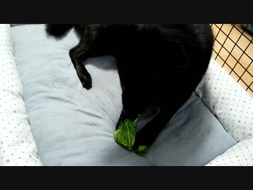 キャベツをちまちま食べる甲斐犬