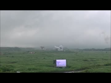 2017年富士総火演 地雷原処理用ロケット弾の発射と爆発の衝撃波