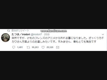 【悲報】たつき監督 けものフレンズから外される