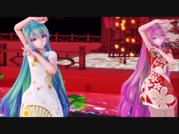 【MMD】 桃源恋歌 【Tda式改変照れミク&ルカ ミニチャイナドレス】