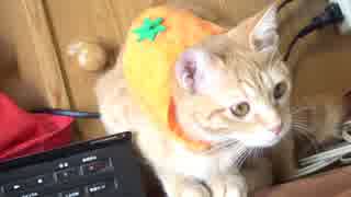 ハロウィンでみかんになった子猫。