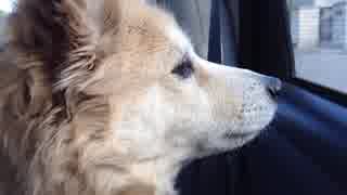 動物病院を目の前にして怯える犬