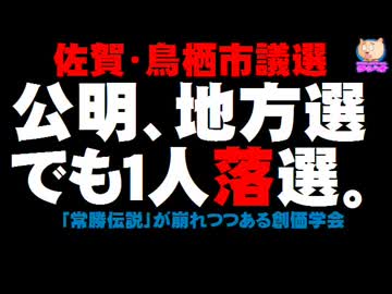 公明、鳥栖市議選で1人落選 - 「常勝」が崩れつつある創価学会