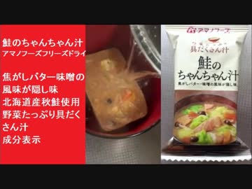 「鮭のちゃんちゃん汁」 アマノフーズ フリーズドライ 焦がしバター味噌の風味が隠し味 北海道産秋鮭使用 野菜たっぷり具だくさん汁 成分