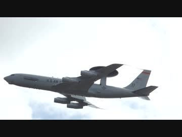 (※手ぶれ注意)E-3C(ZZ 79-0003)のローアプローチ(嘉手納基地)