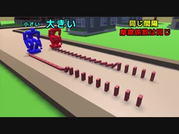 【物理エンジン】ドミノってピンの大きいのと小さいのどっちが速いの?