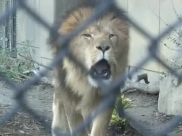 夕方のズーラシアで吠えるライオン(よこはま動物園ズーラシア)